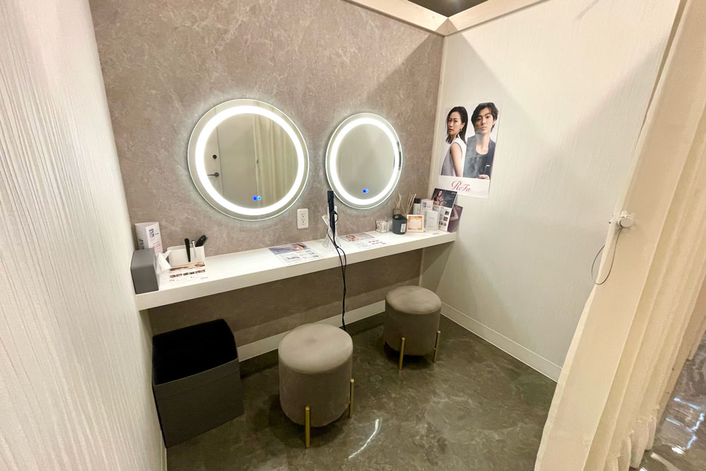 ドレッサールーム。施術後もゆっくり身支度を整えられます。