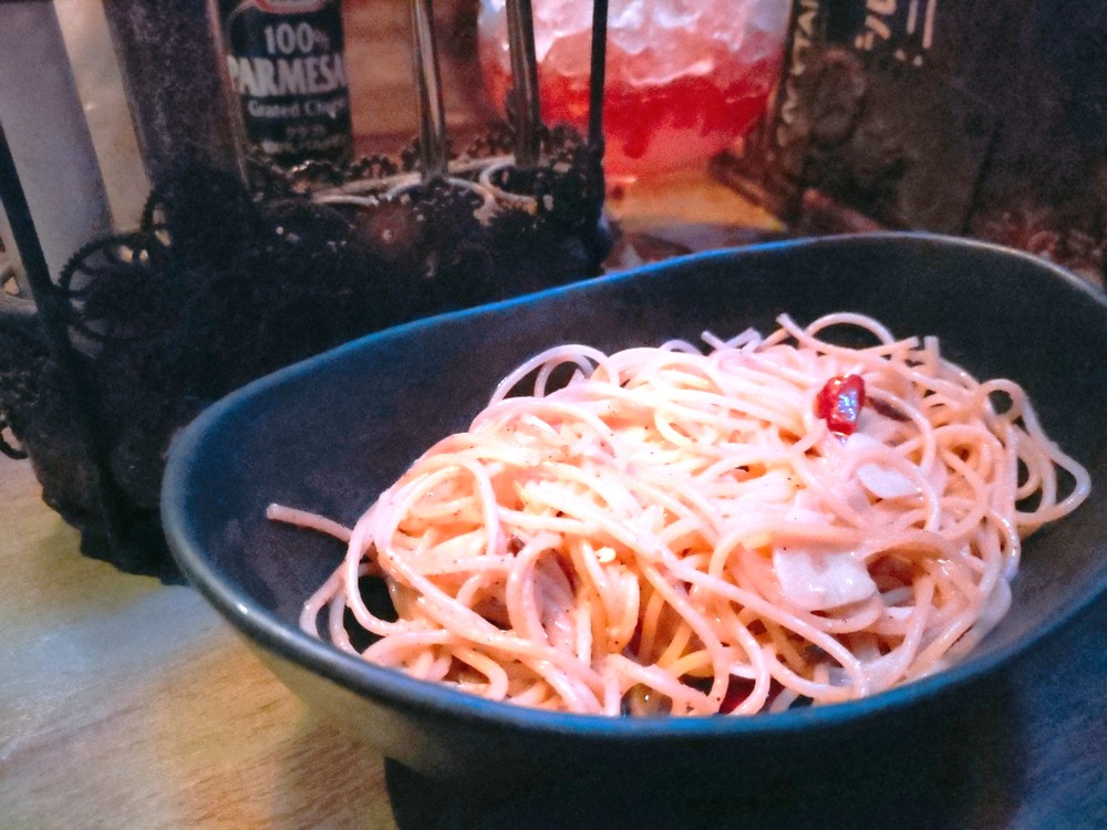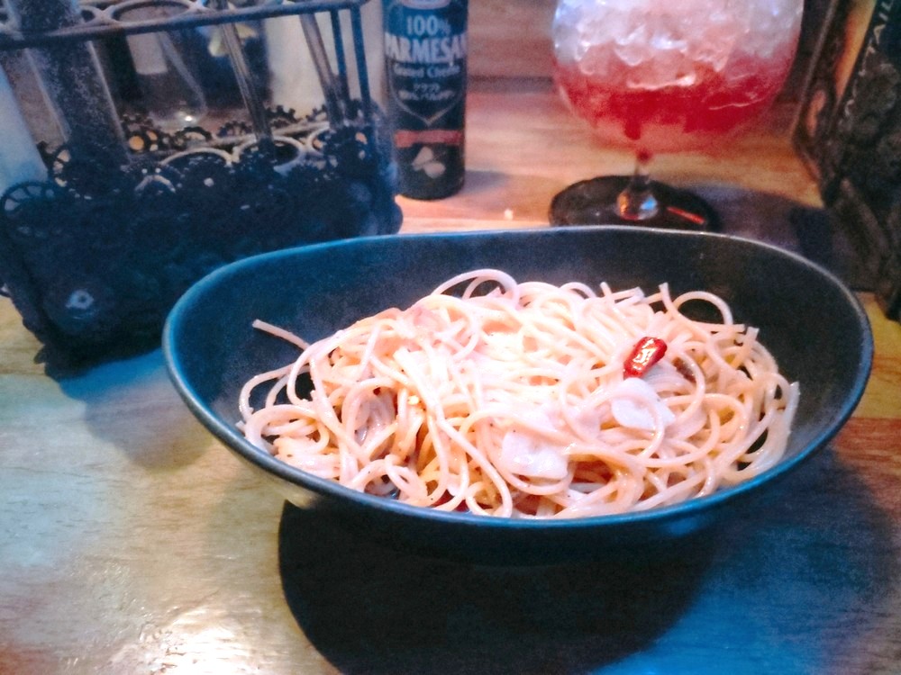 今回は、仕事の帰りでお腹が空いていたので、フードメニューからペペロンチーノをいただきました!