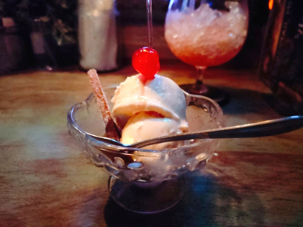 バニラアイスの上からお好みのリキュールをかけて食べるデザートです。甘いものが食べたい、でもお酒も飲みたい、この2つが同時に叶うアイスクリームです。