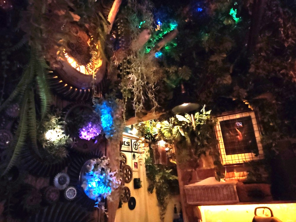 いたるところにスチームパンクの特徴である歯車や蒸気メーターなどがあり、こだわりの世界観を楽しめる空間となっています。