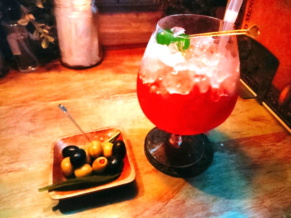 アマレットリキュールのカクテル「アマレッティー」とオリーブをいただきました。