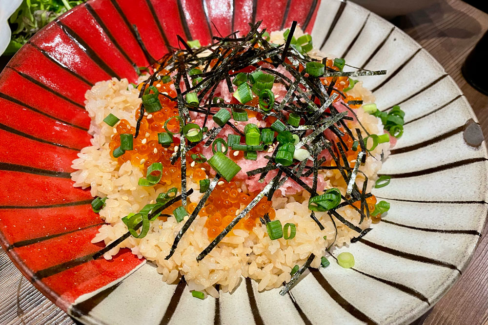 最後の〆は、ねぎとろイクラちらしごはん。「笑みの絆」というこだわりのお米を使ったちらし寿司です。