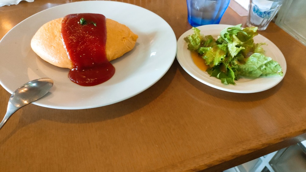 合間にサラダを食べ、オムライスの味をしっかり堪能しました。