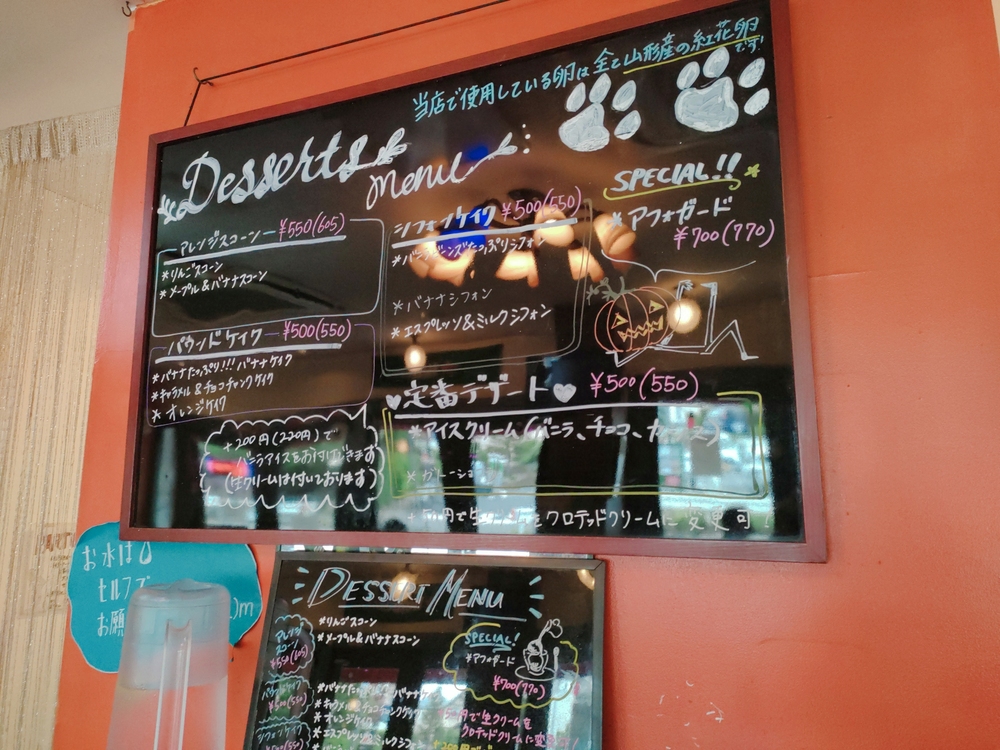 スコーンやシフォンケイクなど、とっても気になりました。次はデザートを食べに行こう!と思っています。