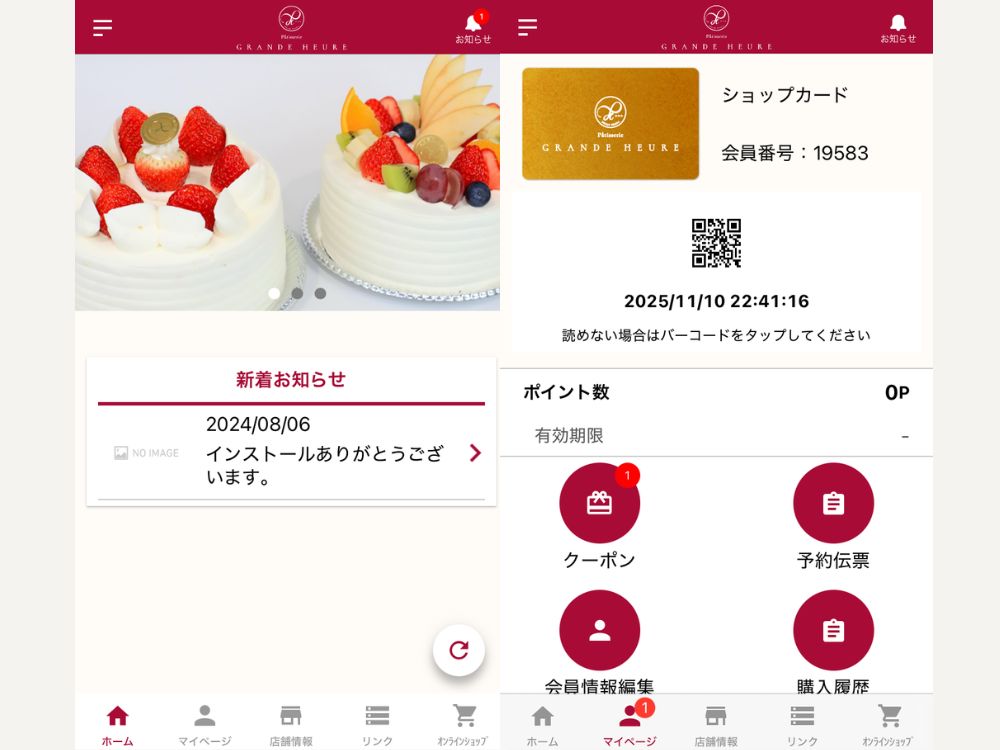 新商品情報やクーポンなどのお得な配信はもちろん、ケーキの予約や商品の受け取りもアプリから可能です。