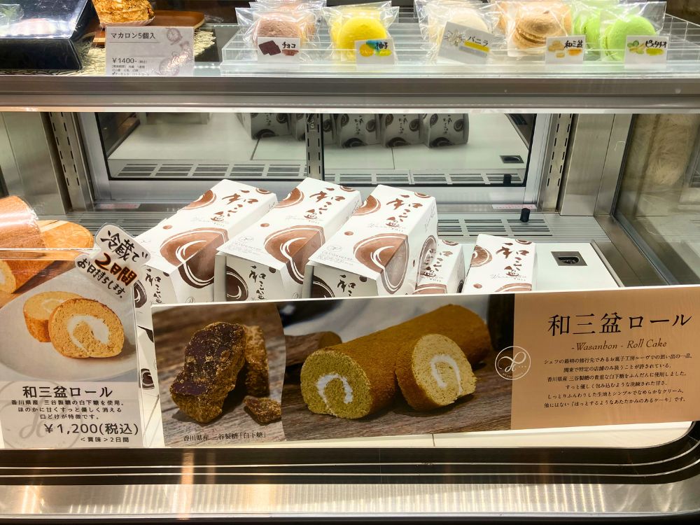 看板商品は、シェフが「お菓子工房ルーヴ」で修行していた際の思い出の一品「和三盆ロール」。