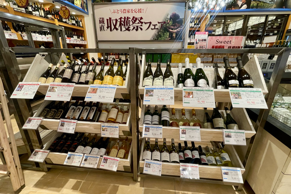 こちらが蔵直ワイン。ワインのプロが厳選したワインばかり。売り切れの商品もありました。