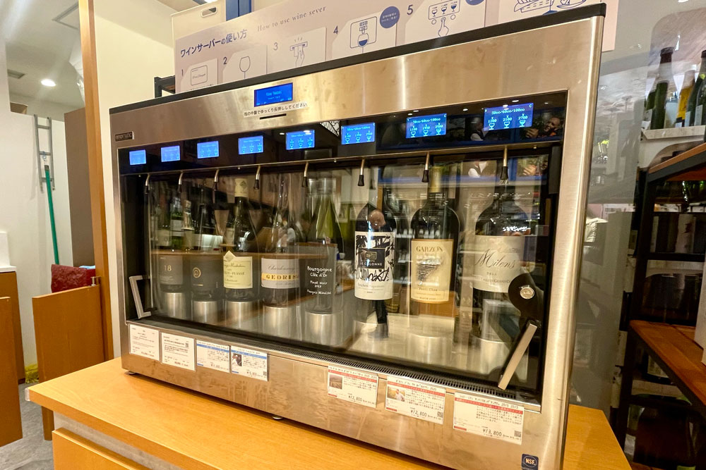 こちらもテイスティングできるワインサーバーです。こちらの方が、テイスティングバーよりも、少し高級なワインが揃っています。