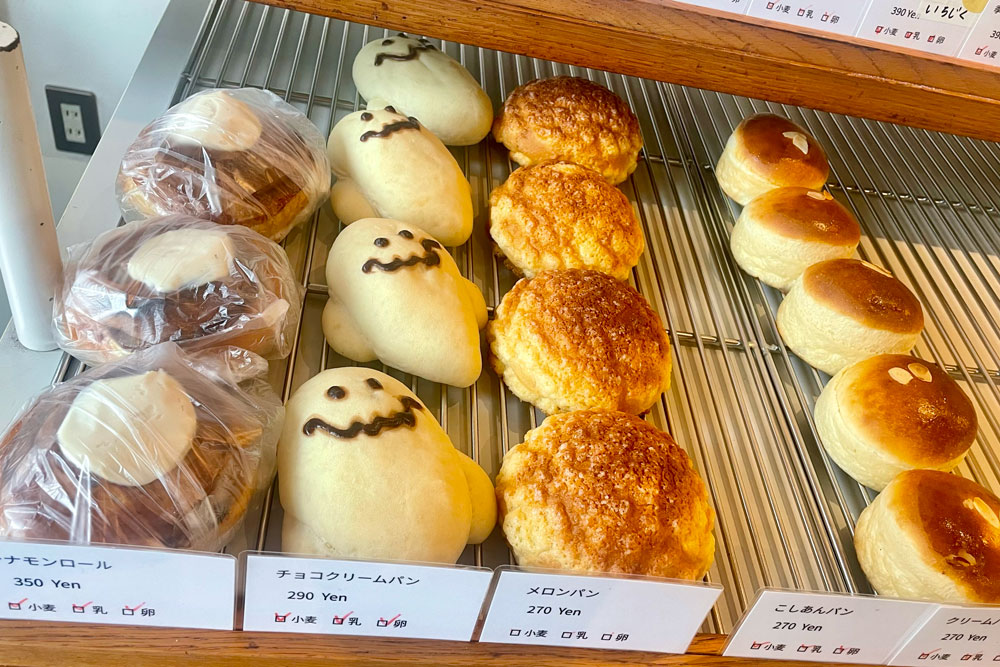 メロンパンも人気の商品の1つです。また、うかがったときはハロウィンが近かったので、かわいいおばけのチョコクリームパンもありました。