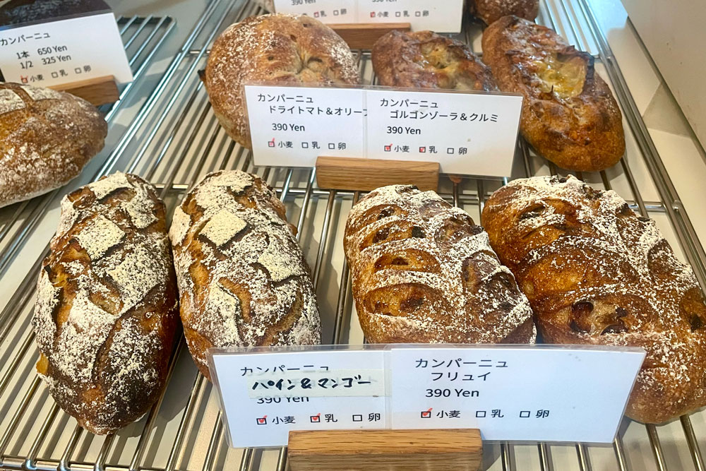 「ドライトマトとオリーブ」や「ゴルゴンゾーラとクルミ」などの定番も大好きですが、季節ごとのフルーツを練り込んだカンパーニュもおいしいんです!