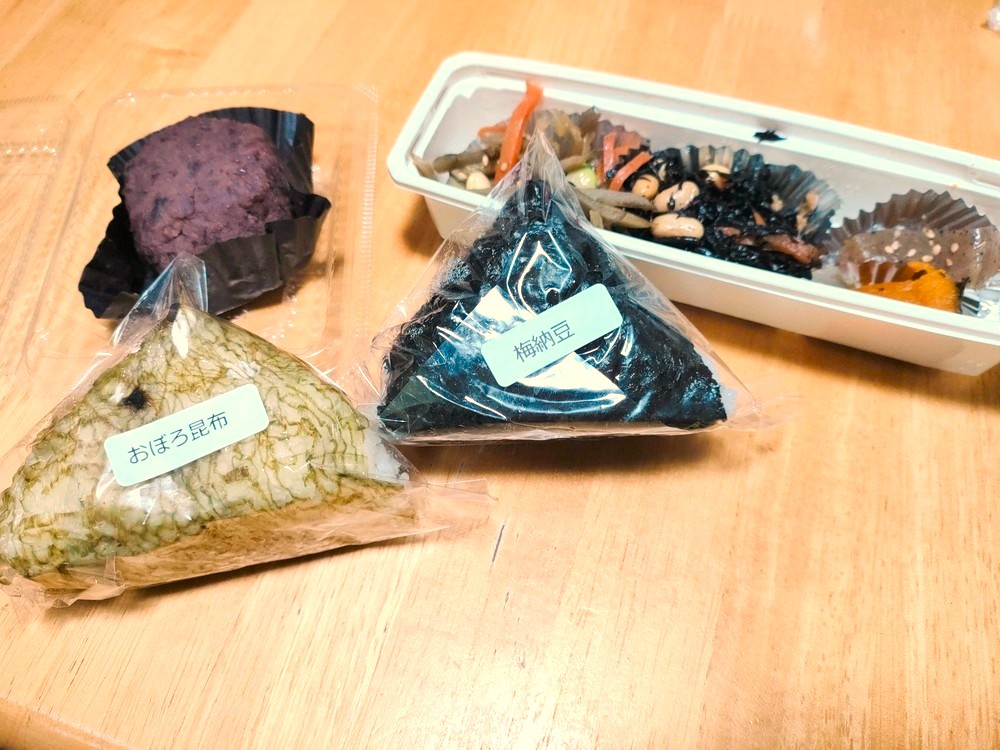 今回はおにぎりとお惣菜、おはぎを買いました。