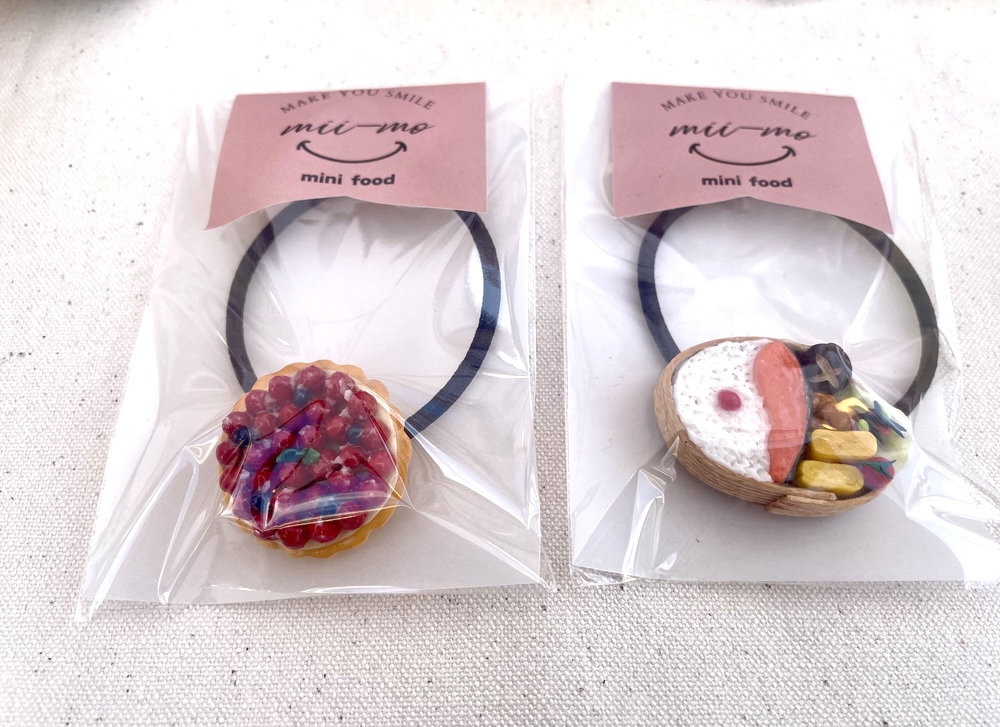 その後も、お子さんのためにコミュニケーションツールとしてミニチュアフードのヘアゴムを探したけれどなかなかいいものが見つからず、お母さんのmii-moさんが自分で手がけるようになった、というのが誕生のきっかけです。