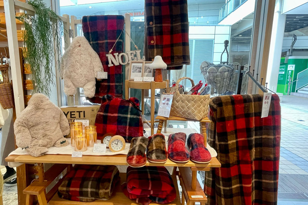 こちらのモコモコの暖色系のブランケットやスリッパなどは、クリスマスプレゼントにもぴったり。