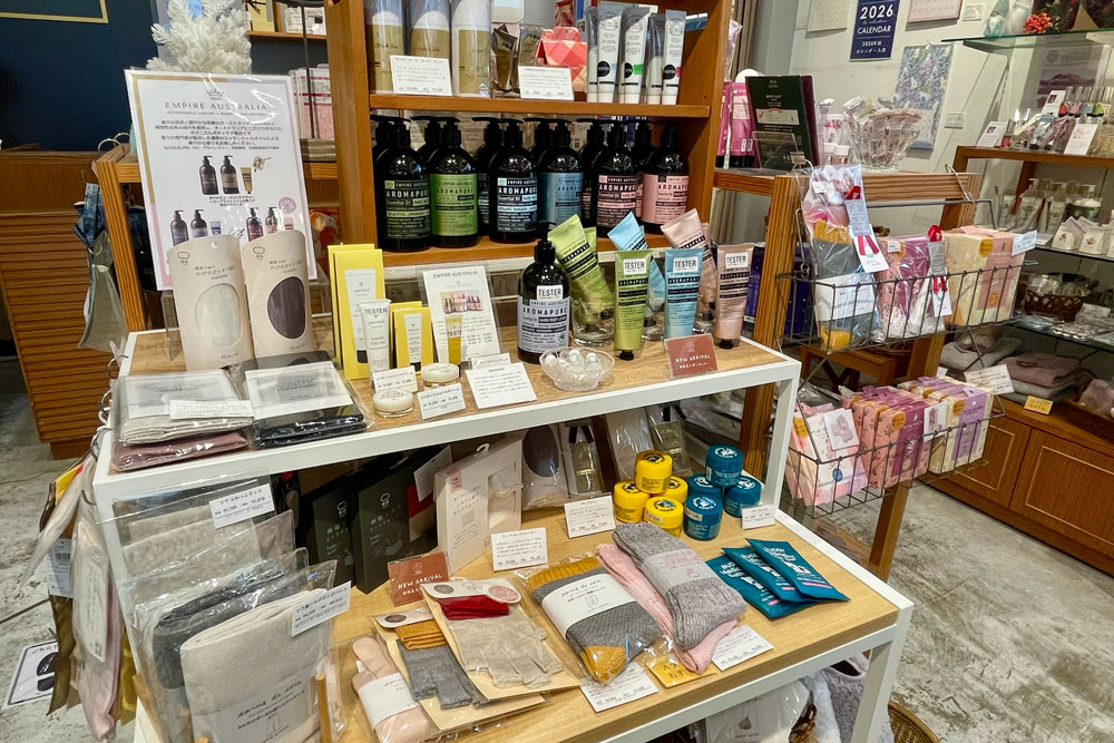 靴下や指無し手袋も冬は重宝しますよね!乾燥してくる時期なので、ハンドクリームやボディローションなどの保湿アイテムも充実していました。