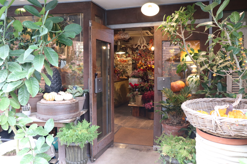 たまプラーザ駅から少し歩いた住宅街の一角に、グリーンに囲まれた小さな花屋がひっそりと佇んでいます。お店に入ると、季節の花々の香りに包まれ、つい時間を忘れてしまうほど。