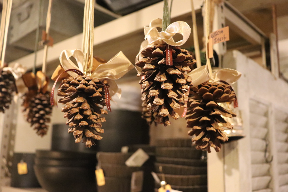 店内を見回すと、天井からは松ぼっくりがいくつもぶら下がっていました。
