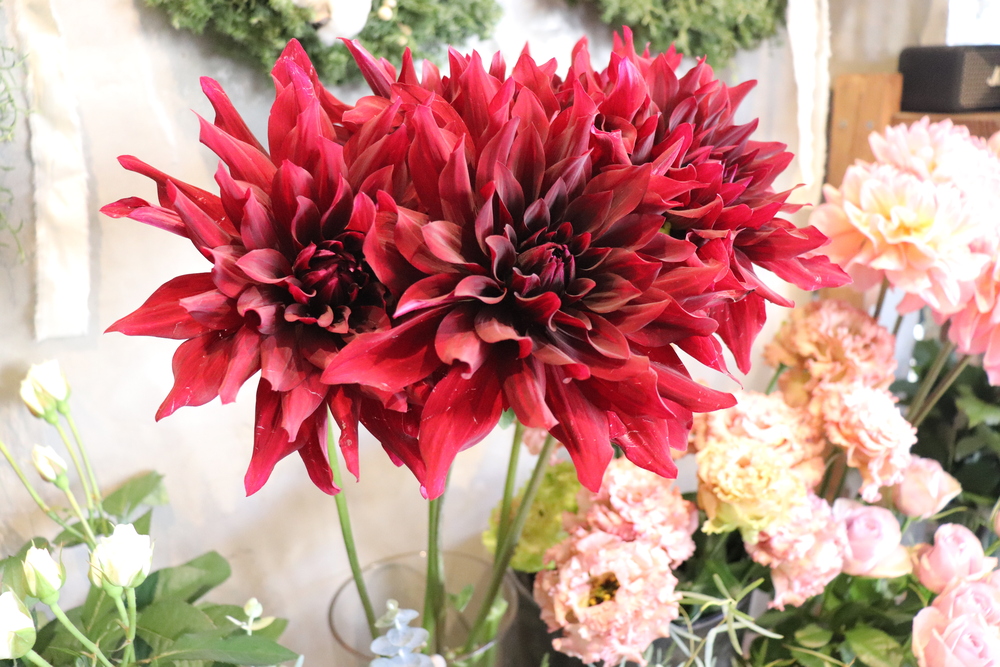 花の存在感が際立っていて、思わず足を止めて見入ってしまうほど。一輪でも空間の印象が変わりそうな、力強さと美しさを感じます。