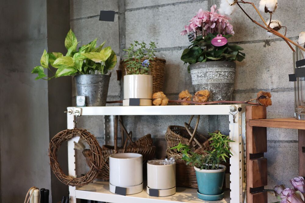 花束はもちろん、鉢花や観葉植物、花瓶などもそろっていて、暮らしの中に無理なく花を取り入れられるのも魅力のひとつ。