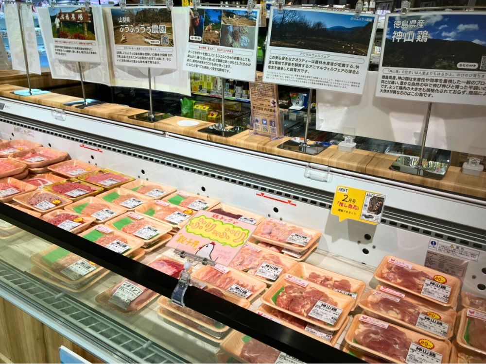 安全や品質だけでなく、生産者とのつながりを大切にしており、食材の背景や想いも伝わってくる売り場づくりがされています。