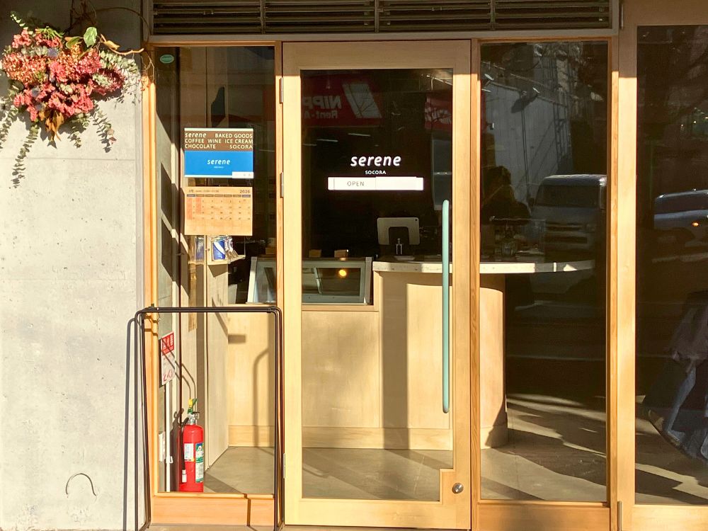 2026年1月に青葉台駅から徒歩約5分の場所にオープンした「serene(セリーン)」は、チョコレート専門店「SOCORA(ソコラ)」の姉妹店。