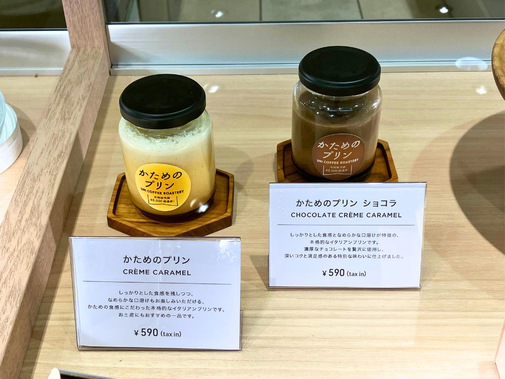 ドーナツ以外にも「なめらかバスチー」「かためのプリン」など、お土産に人気のスイーツも販売しています。