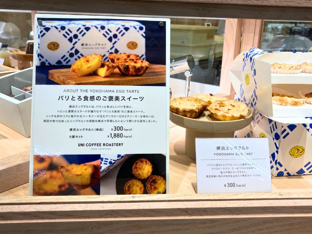 青葉台 東急フードショー店では「横浜エッグタルト」も販売。外はパリッと香ばしく焼き上げたパイ生地の中に、濃厚なカスタードクリームをたっぷり閉じ込めた、贅沢なスイーツです。