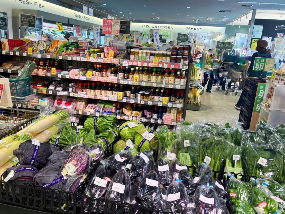 新鮮な生鮮食品が並ぶ店内