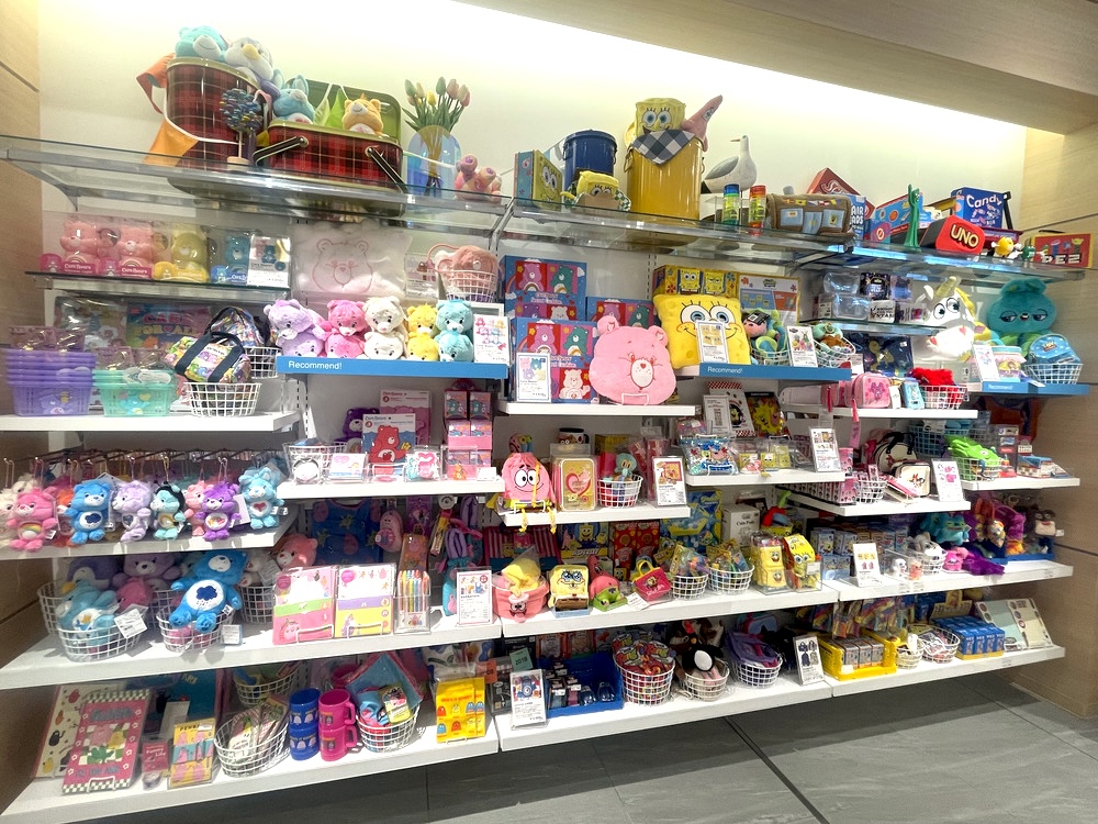バーバパパやスポンジボブ、JUDYDOLL、ケアベアーズなど、お店に行けばさまざまなキャラクター商品を手に取ることができます。